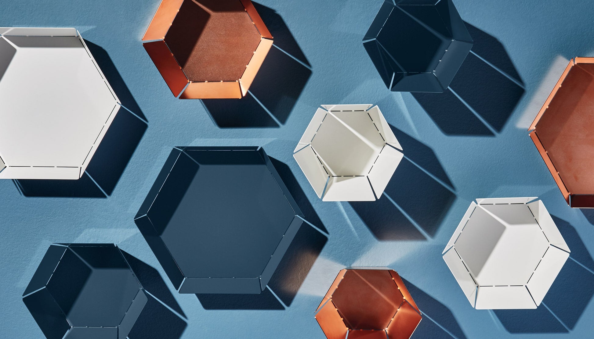 Ships flat and folds into shape. Fit to be filled yet pretty when left empty. Think of it as functional origami without paper cuts.