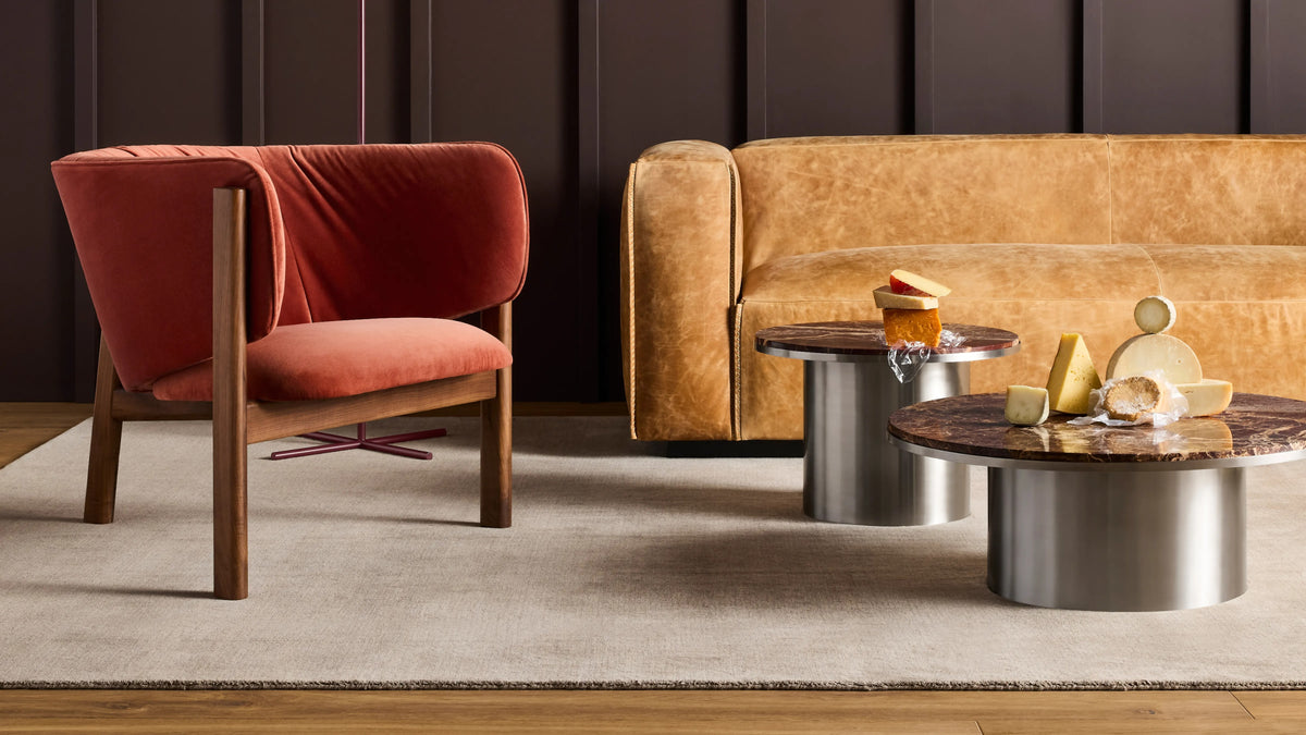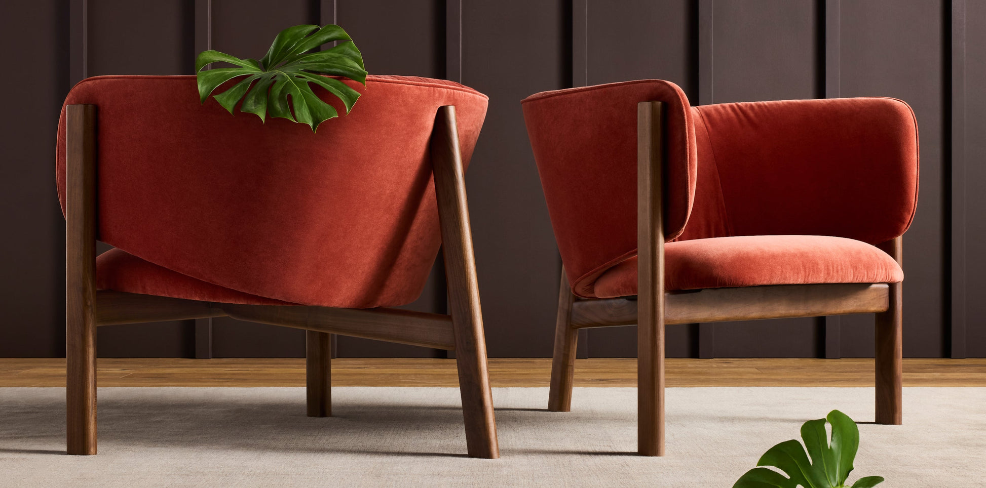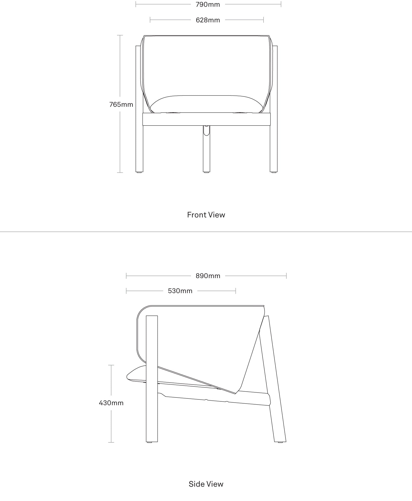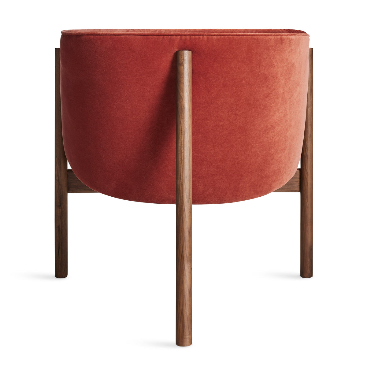All In is poised to please in any space. A robust, solid wood frame forms an elegant tripod and supports a deep, cushy sit. Soft, pillowy back curves to form arms and cradle you in comfort while maintaining a wholly dignified presence.