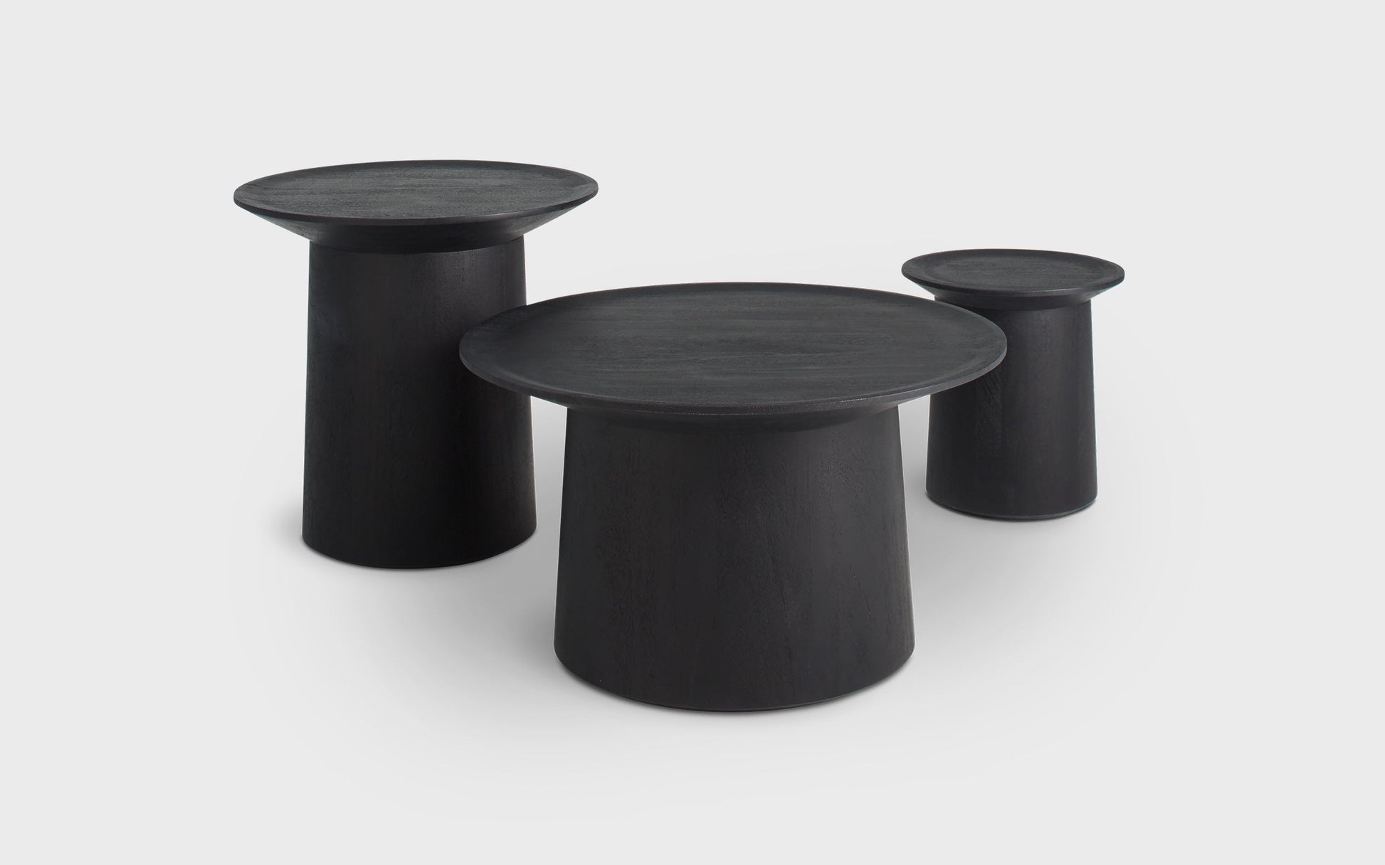 Simplicity is the key to elegance. Solid blacken stained acacia timber is runway ready in three beautiful table shapes that will never go out of fashion. Table top has a gentle beveled edge detail to dress up any room.