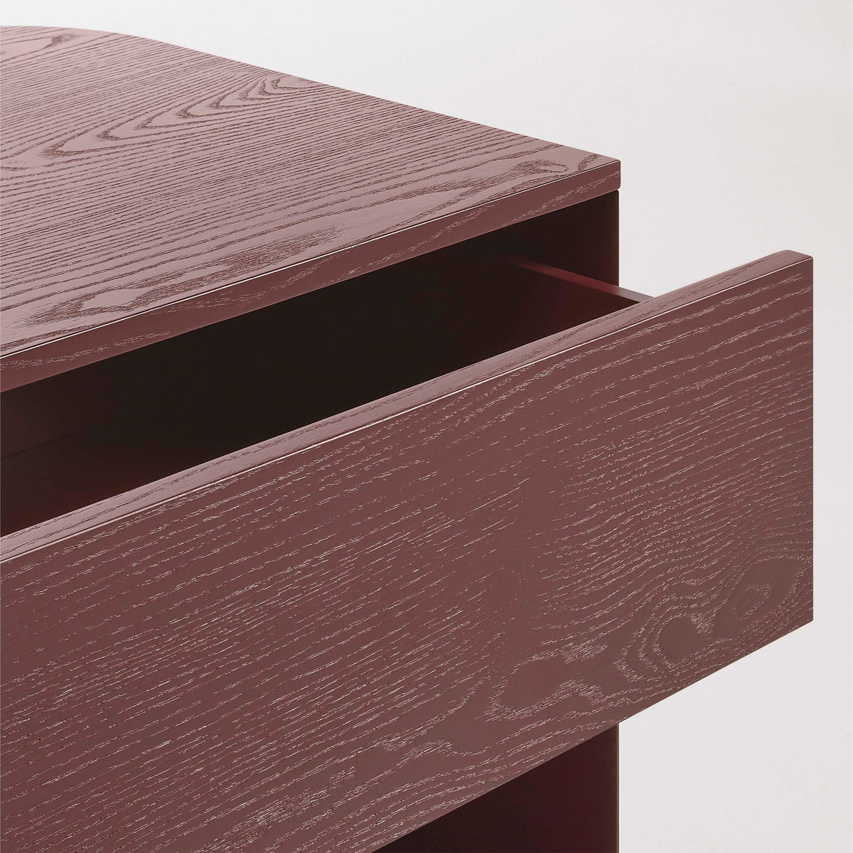 For those who like to dilly, but also dally. A friendly powder-coated steel form packs a punch and a plethora of storage. Inconspicuous, oversized drawer keeps your nocturnal essentials neatly tucked away yet close at hand.