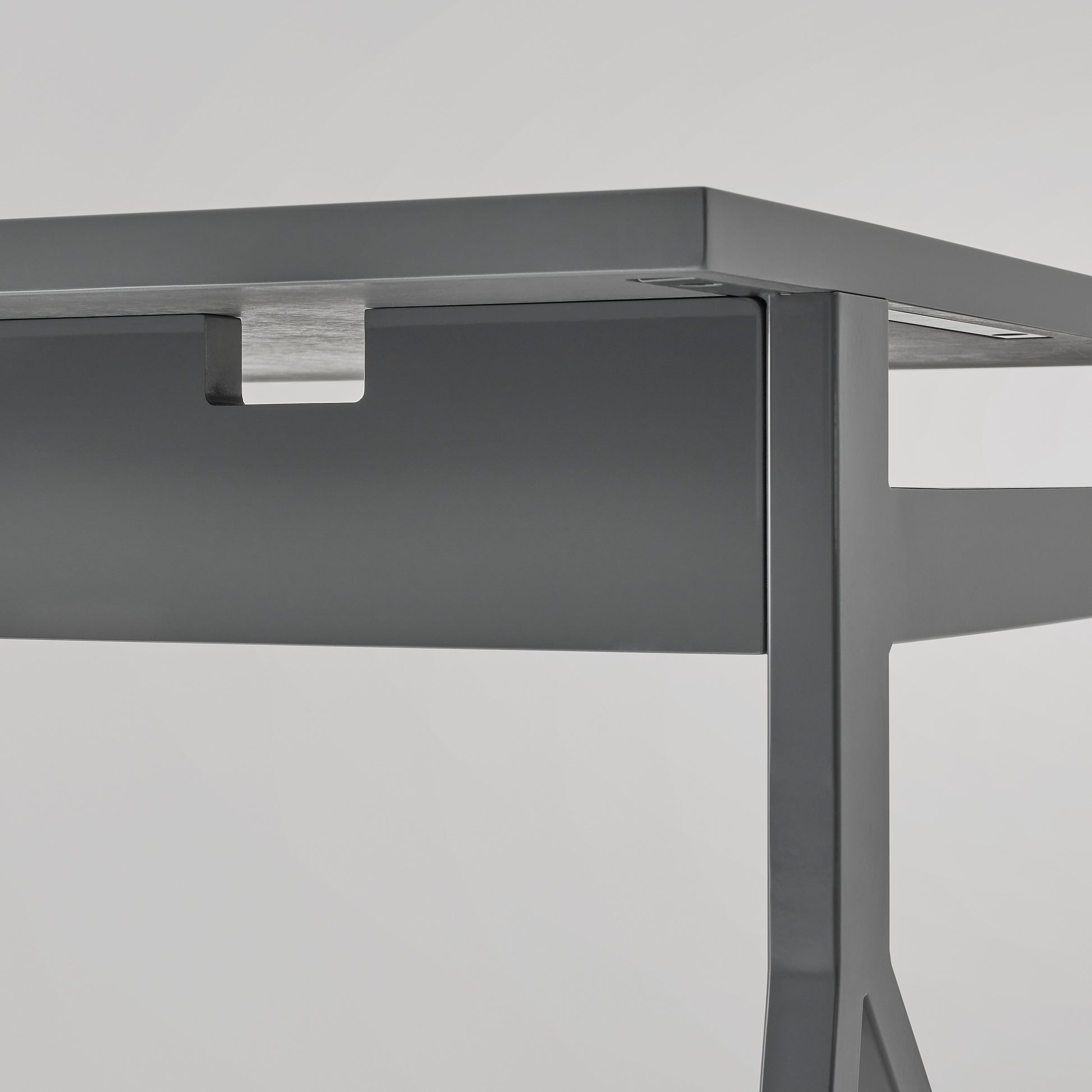 An uncluttered surface. A keyboard tray. What else do you need to finish the great Australian novel or even the Mother of All Spreadsheets? How about some dramatic legs and color? So get to it, Hemingway.