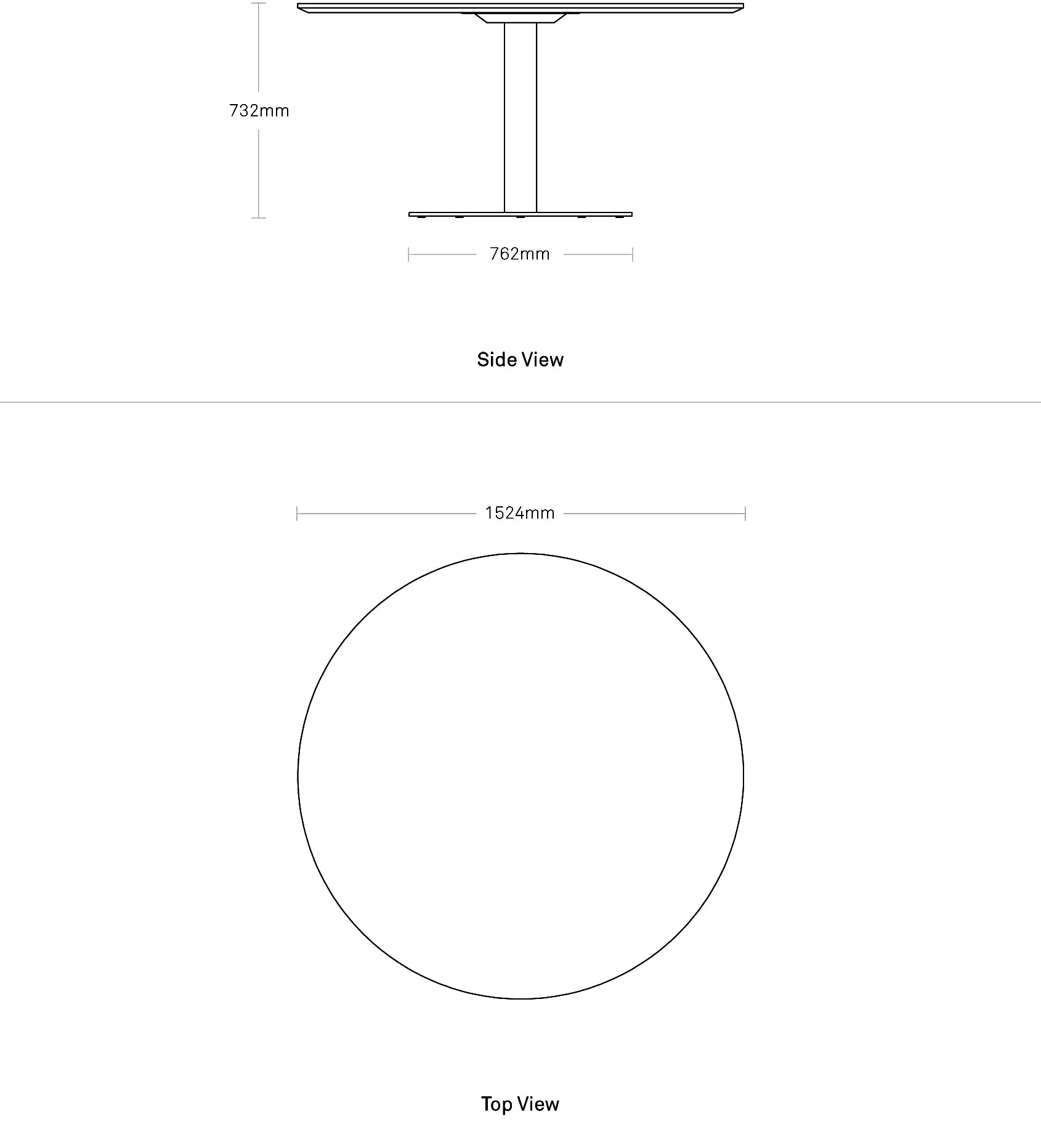 • 1524mm diameter top seats seven comfortably with maximum seating for eight