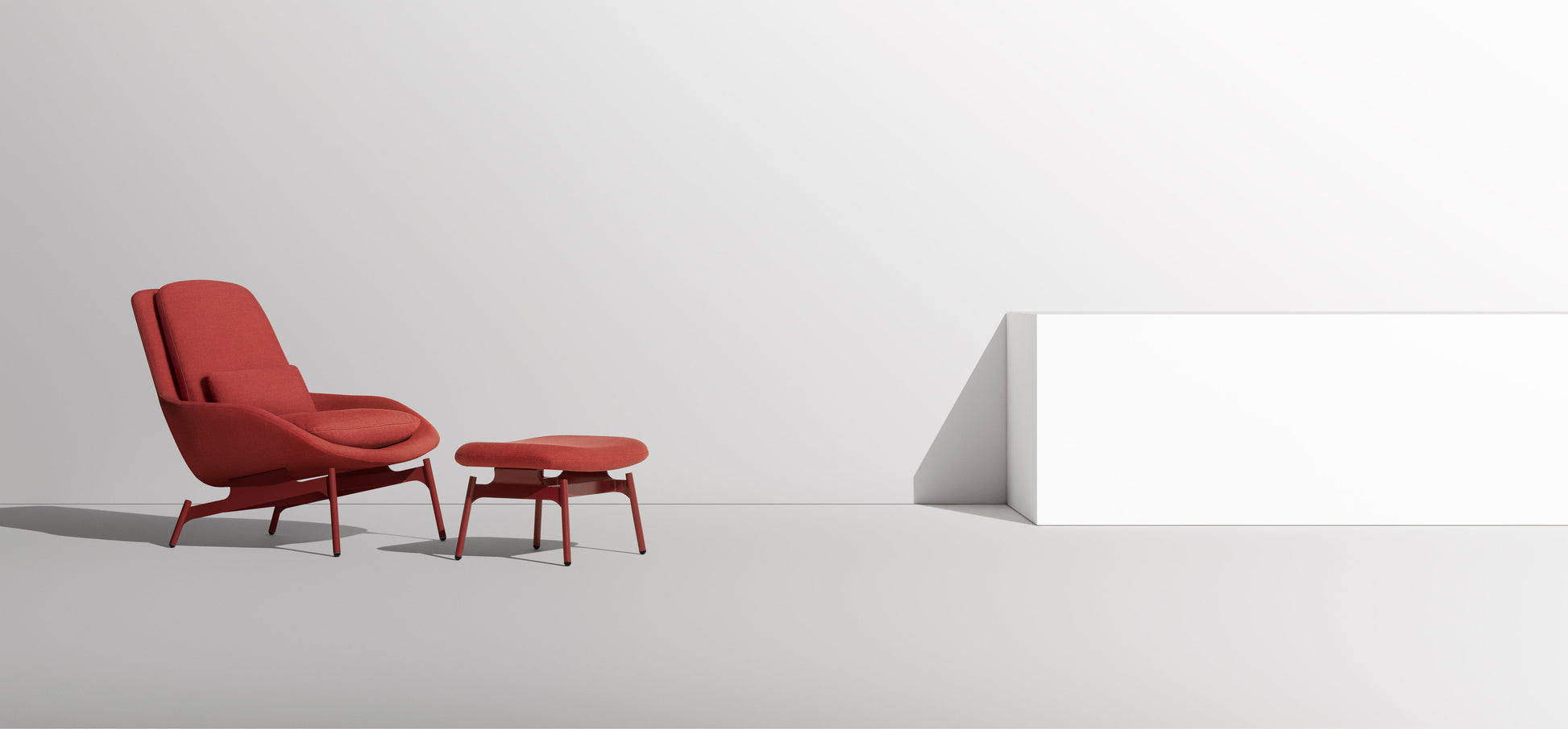 The perfect companion for our Field Lounge Chair, a “just-right” padded upholstered cushion is cradled by sculptural steel legs.