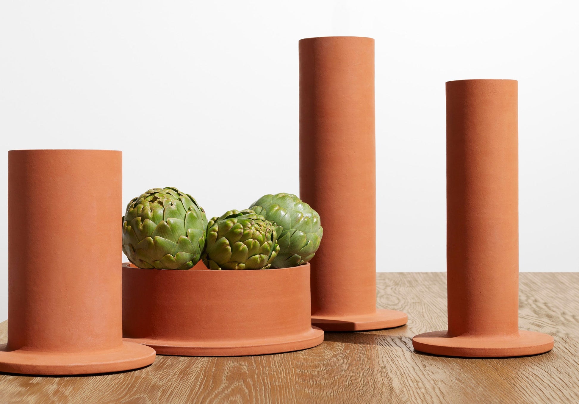Inspired by architectural forms, Flange reinterprets the warmth and tactical appeal of terracotta in a decidedly modern way. As captivating empty as they are filled, Flange is fit for cacti or yarn balls, but not intended for culinary pursuits.