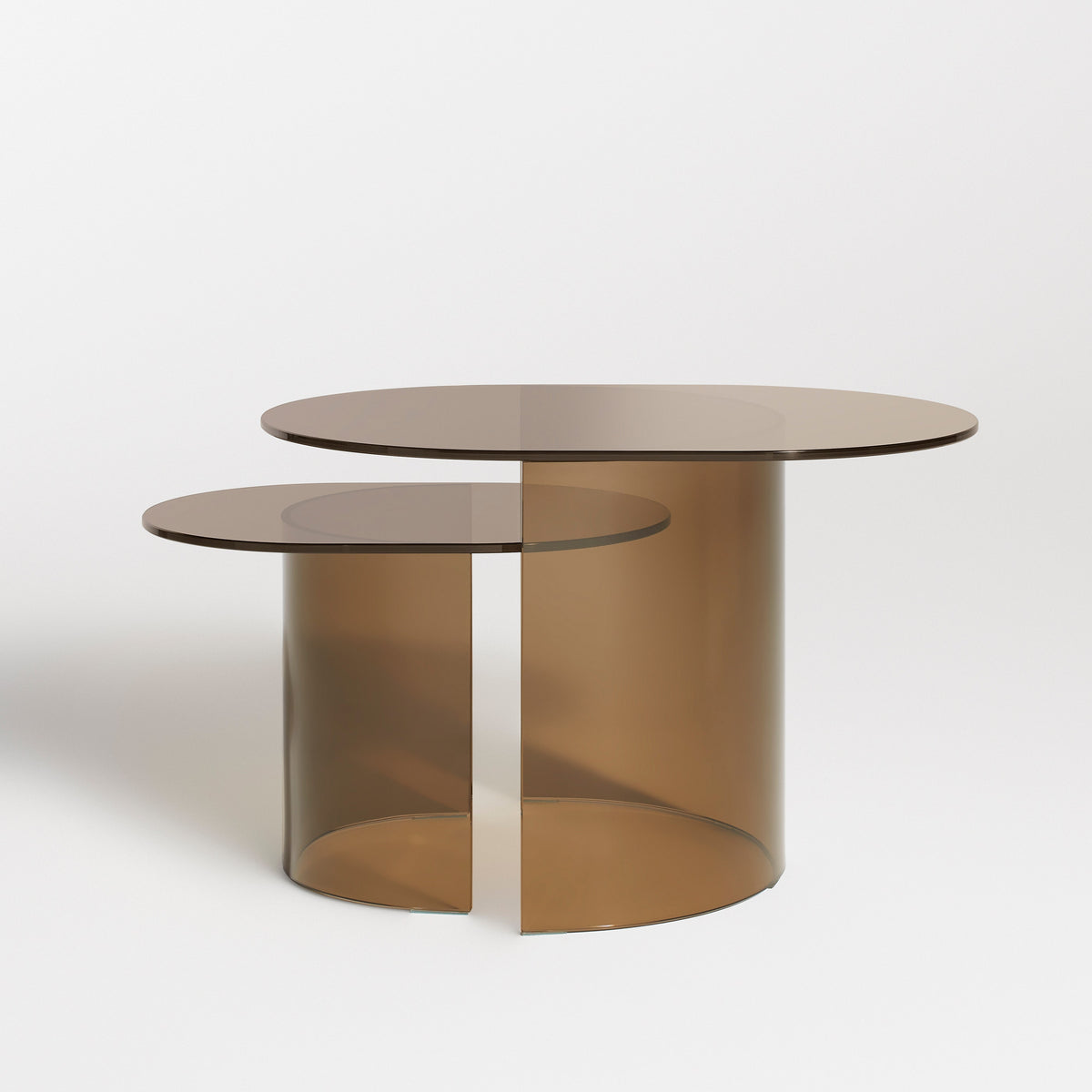 Sculptural side table that’s moody and a little bit attitude-y. Bronze tempered glass gracefully arches to support a cantilevered glass top. Ample curves and a beveled edge keep the silhouette soft and dynamic. Nest with Half Past Small Side Table to create a visually stunning layered effect and ample overhead appreciation.