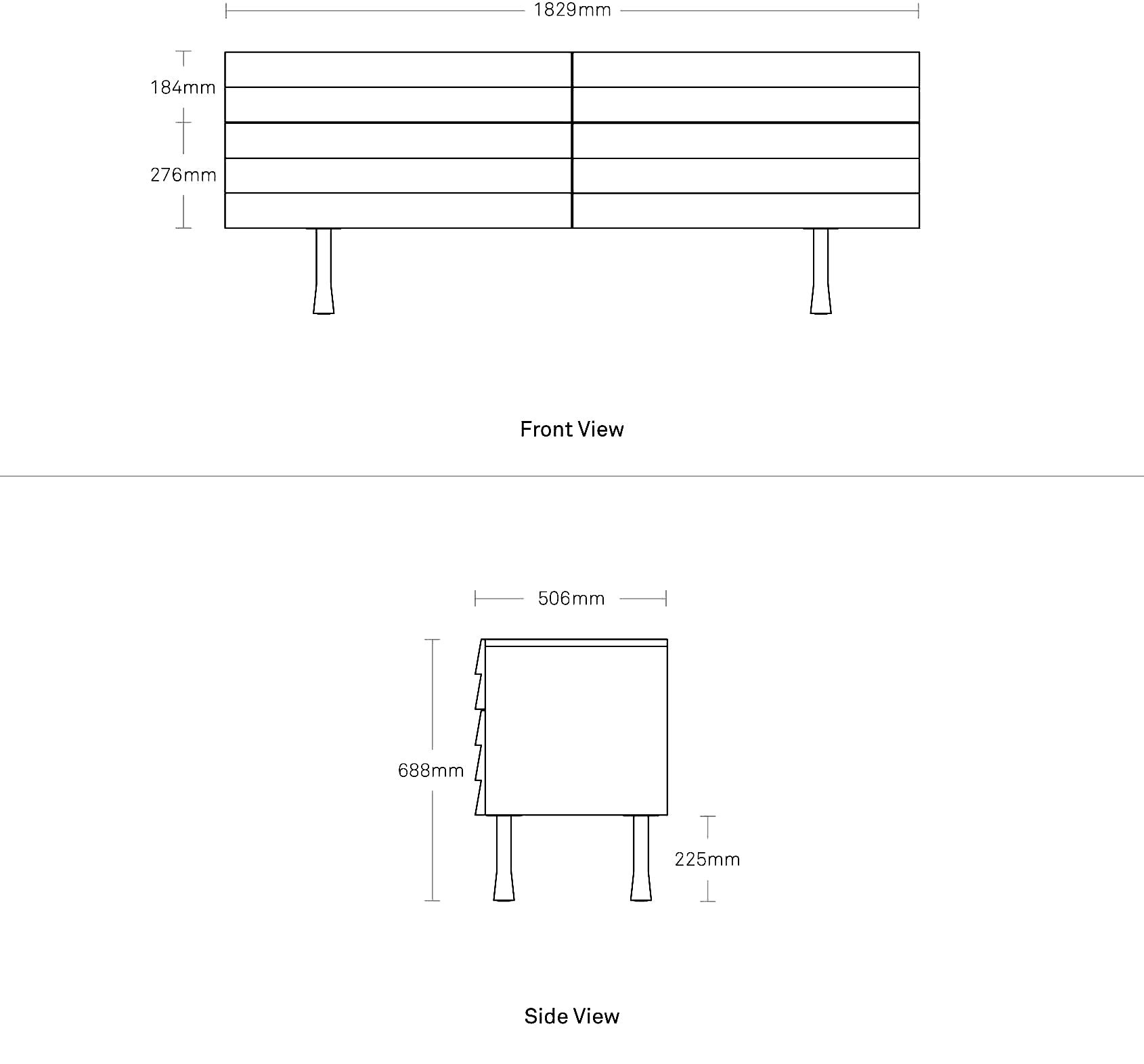 Overlapping wood drawer and door fronts give the collection its name, while the white washed maple finish and a scene stealing leg bring the visual charisma. With soft close doors and drawers.
