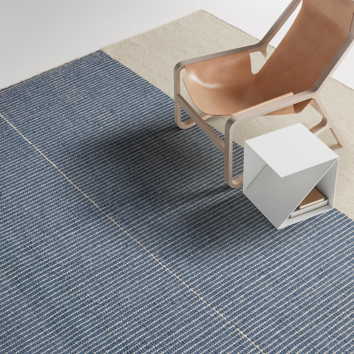Put some art on the floor and walk all over it. This flat weave wool wonder sets a swath of stripes against a solid background. The alchemy of simplicity rendered in wool, or as we like to call it, “a cool ass looking rug”.