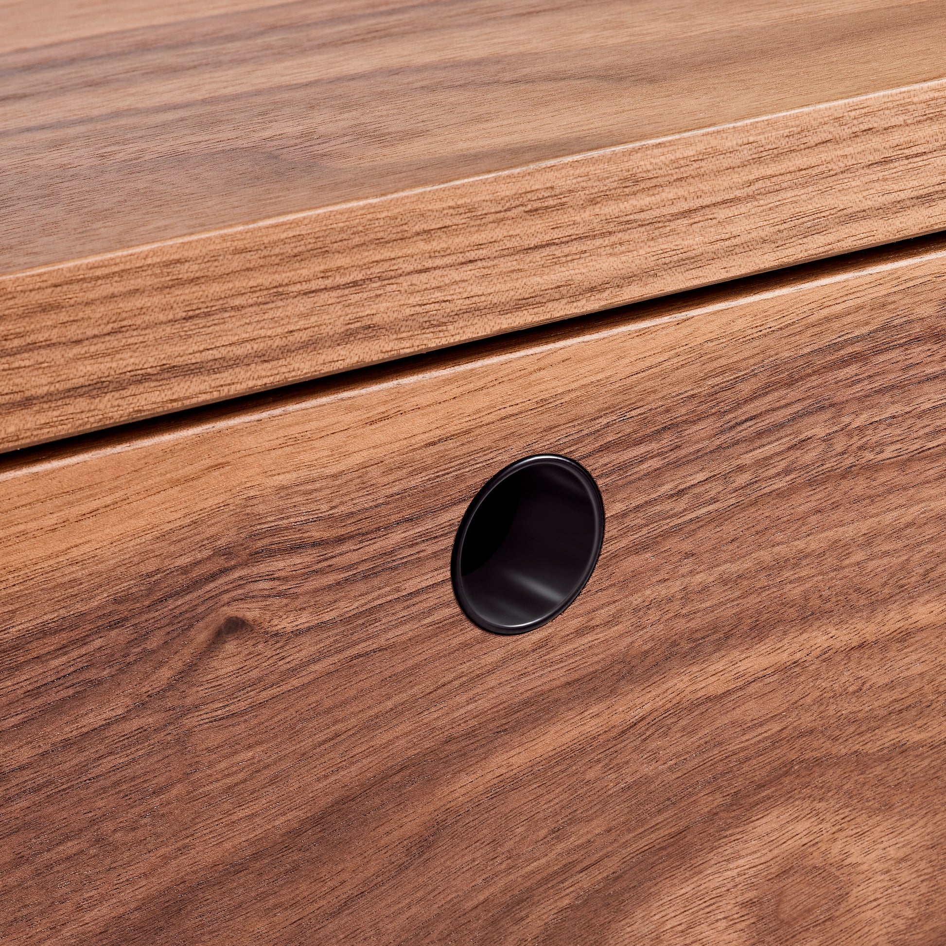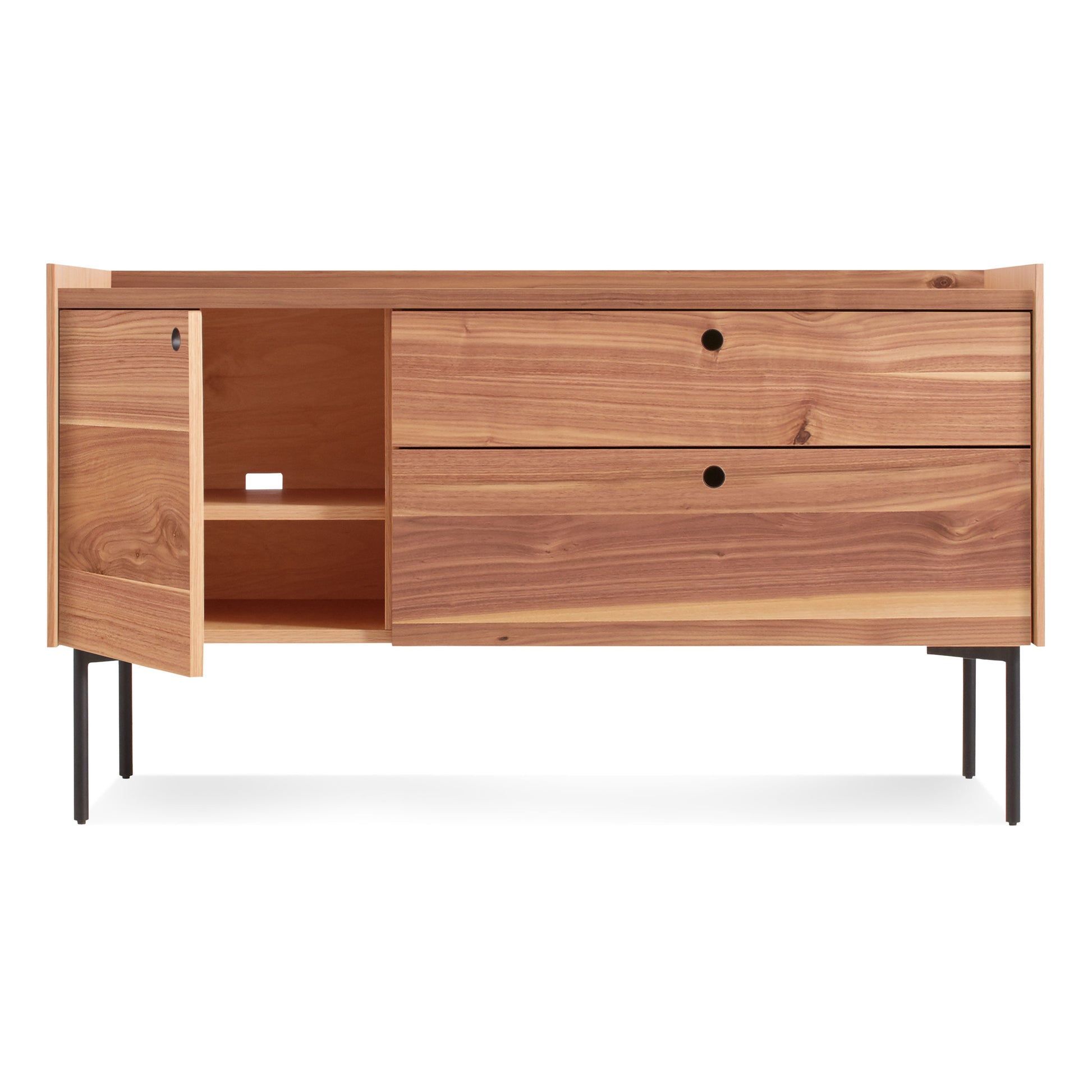 What is missing makes the mojo in this new wood case good collection. A round cut out in drawer and door front acts as the pull, the elimination of material creating function and visual appeal.
