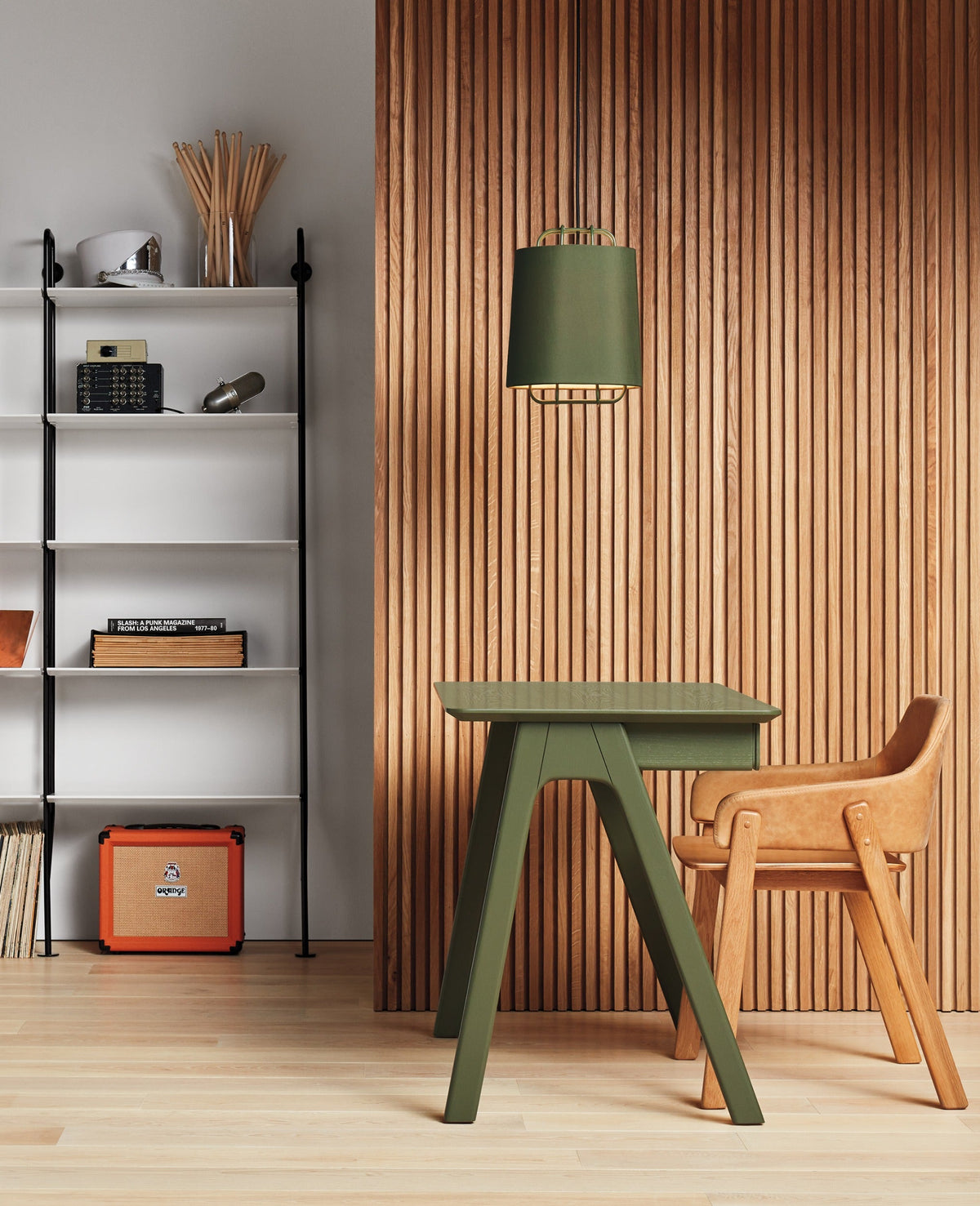 • Olive on Ash: Painted ash veneer top with painted solid wood legs