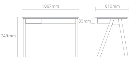 Radius edges and wood couple in this elemental desk. Pencil drawer keeps it tidy and can be assembled to either the left or right side.