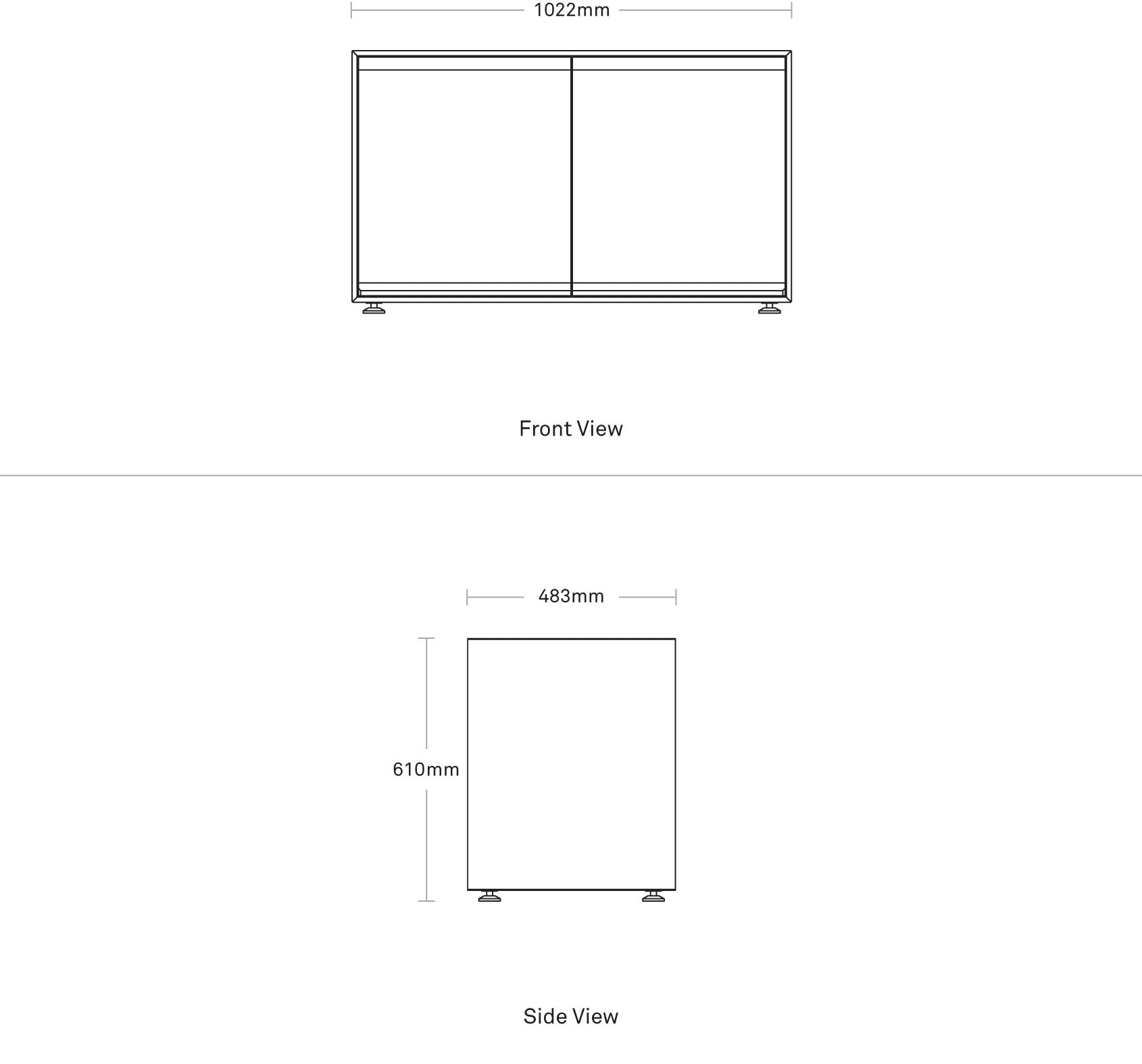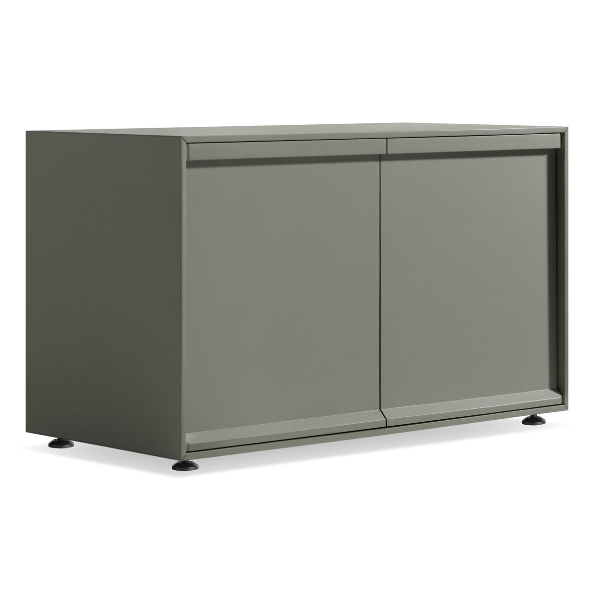 Tranquil staple. Crisp lines and unassuming relief pulls conspire to keep the action behind soft close doors. A matte painted finish in muted tones delivers serenity and sets up a streamlined storage solution for the living room, bedroom and office.